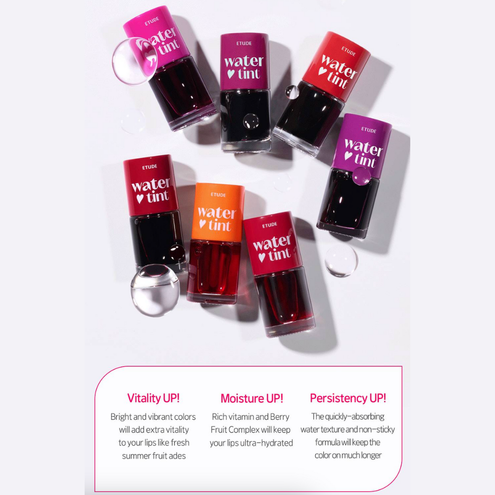 Etude Dear Darling's expert formulation uses ultra-fine, water-suspended pigment technology that instantly blends with lips. This innovation delivers a custom-tinted effect that seamlessly blends with your natural skin tone. The mist-like, water-based texture gently deposits color for a natural, luminous result.