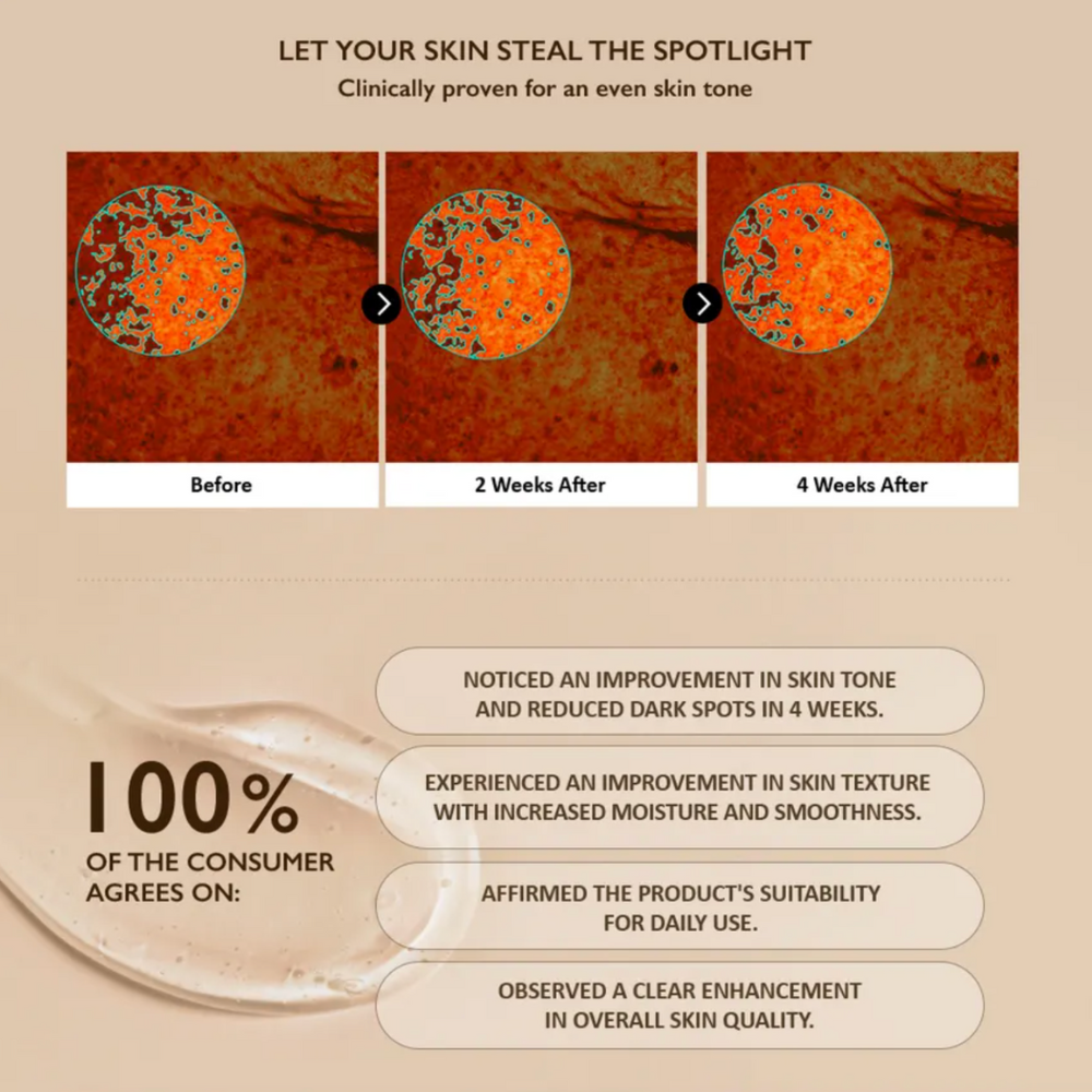 Illuminez et unifiez votre teint avec ce sérum vegan contenant 4 % d’acide tranexamique et niacinamide pour réduire les taches brunes. Enrichi en complexe Centella et acide ascorbique, il apaise et hydrate grâce à sa texture gel légère et non collante. Sans sulfates, alcool ni parfum artificiel, il convient à tous les types de peau, y compris les peaux sensibles.