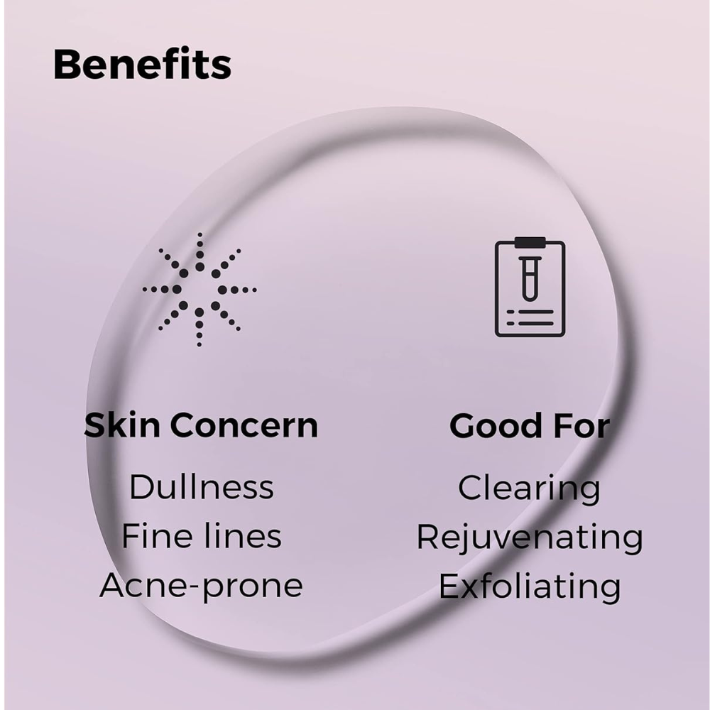Éliminez les points blancs et uniformisez le teint grâce à cet exfoliant doux au glycolique. Enrichi en eau de pomme, source naturelle d’AHA, il aide à dissoudre les points blancs, noirs et impuretés, pour une peau plus lisse et nette. À appliquer le soir sur peau nettoyée et tonifiée, puis laissez absorber avant de poursuivre votre routine. Utilisez un écran solaire le jour.